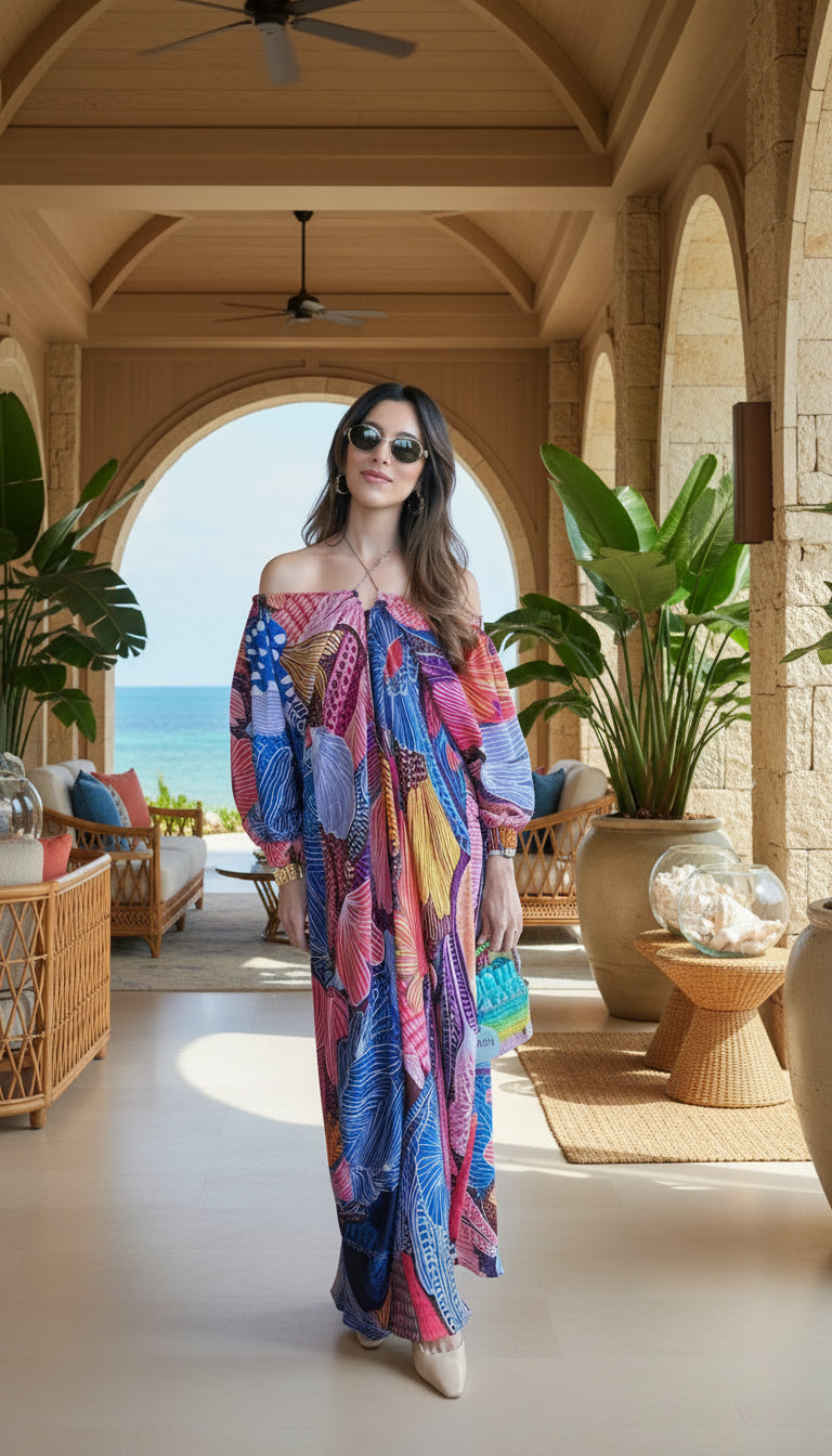 - Off Shoulder kaftan With Tie-Up Detail